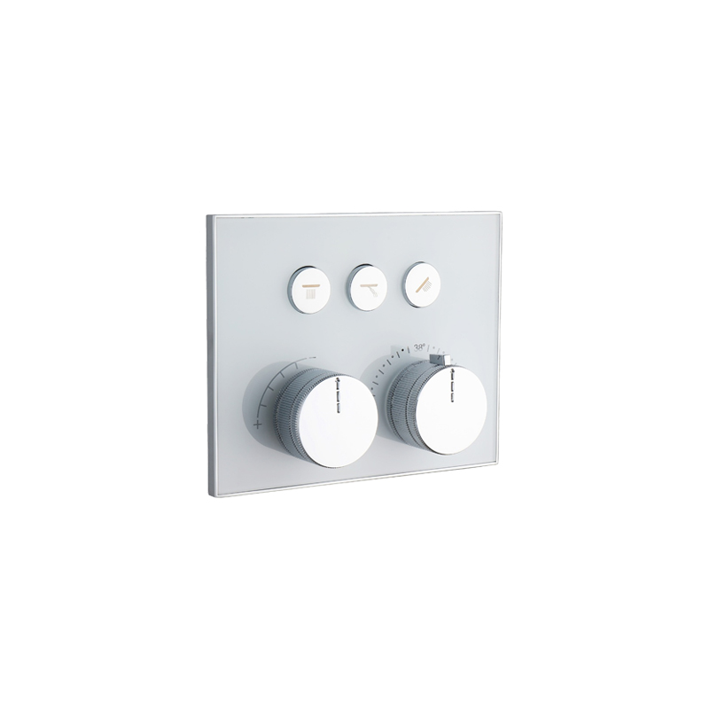 Chrome Glass Finish 3 Function Button Thermostatic Diverter With Flow Control