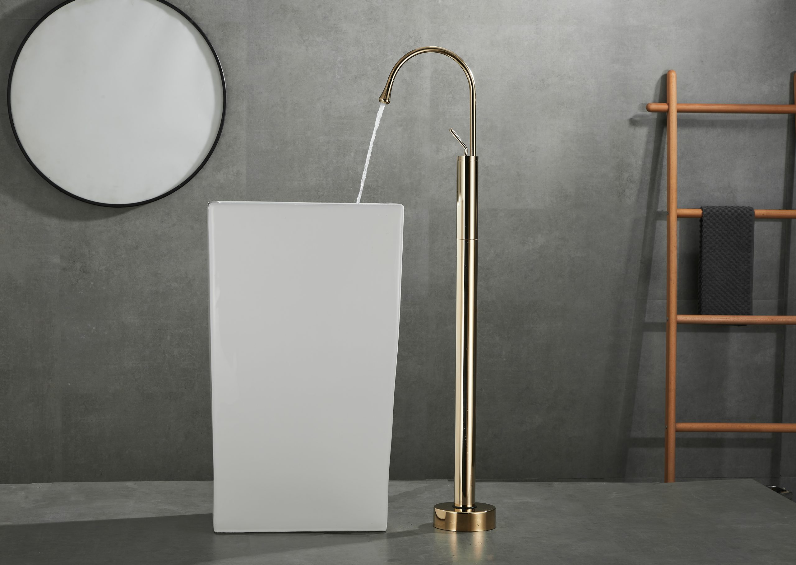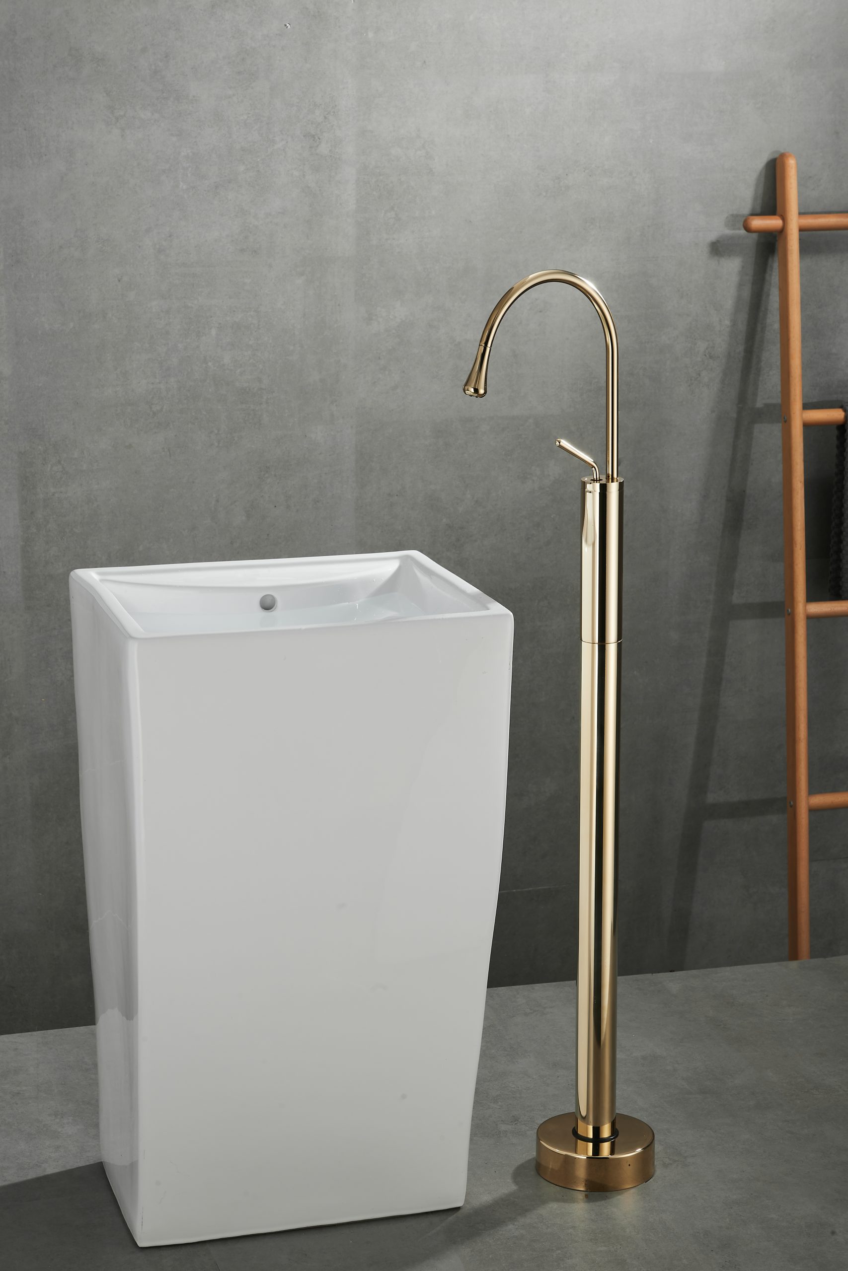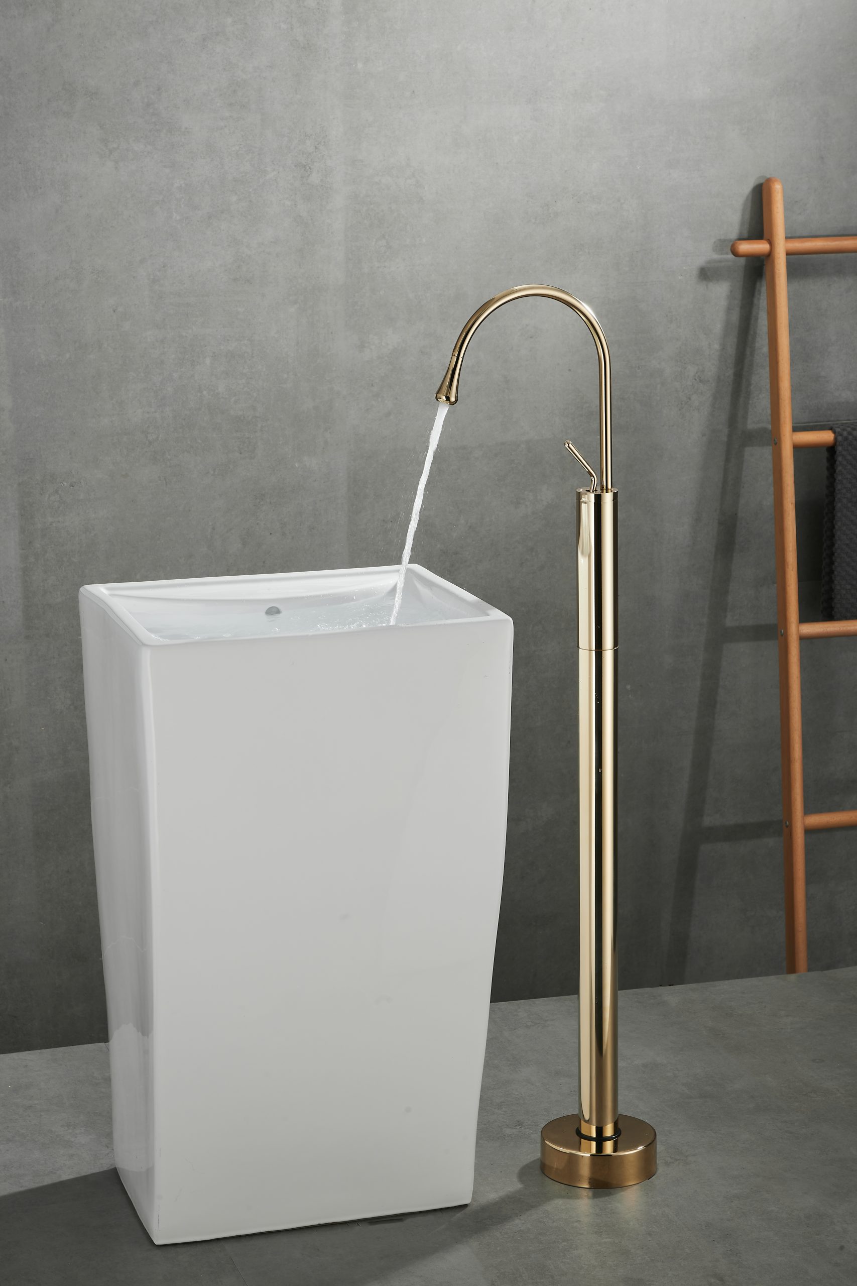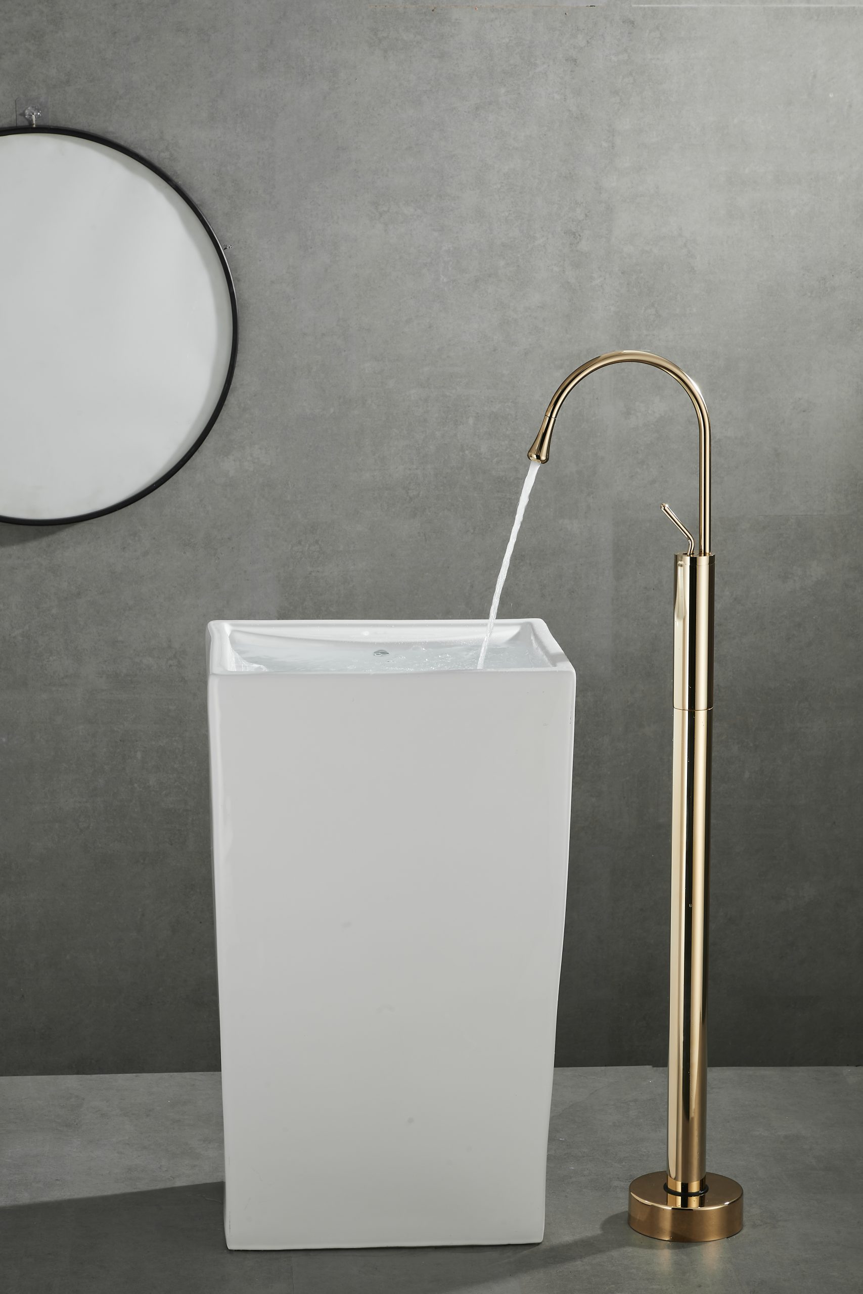 Gold Floor Mounted Standing Pedestal Basin Faucet