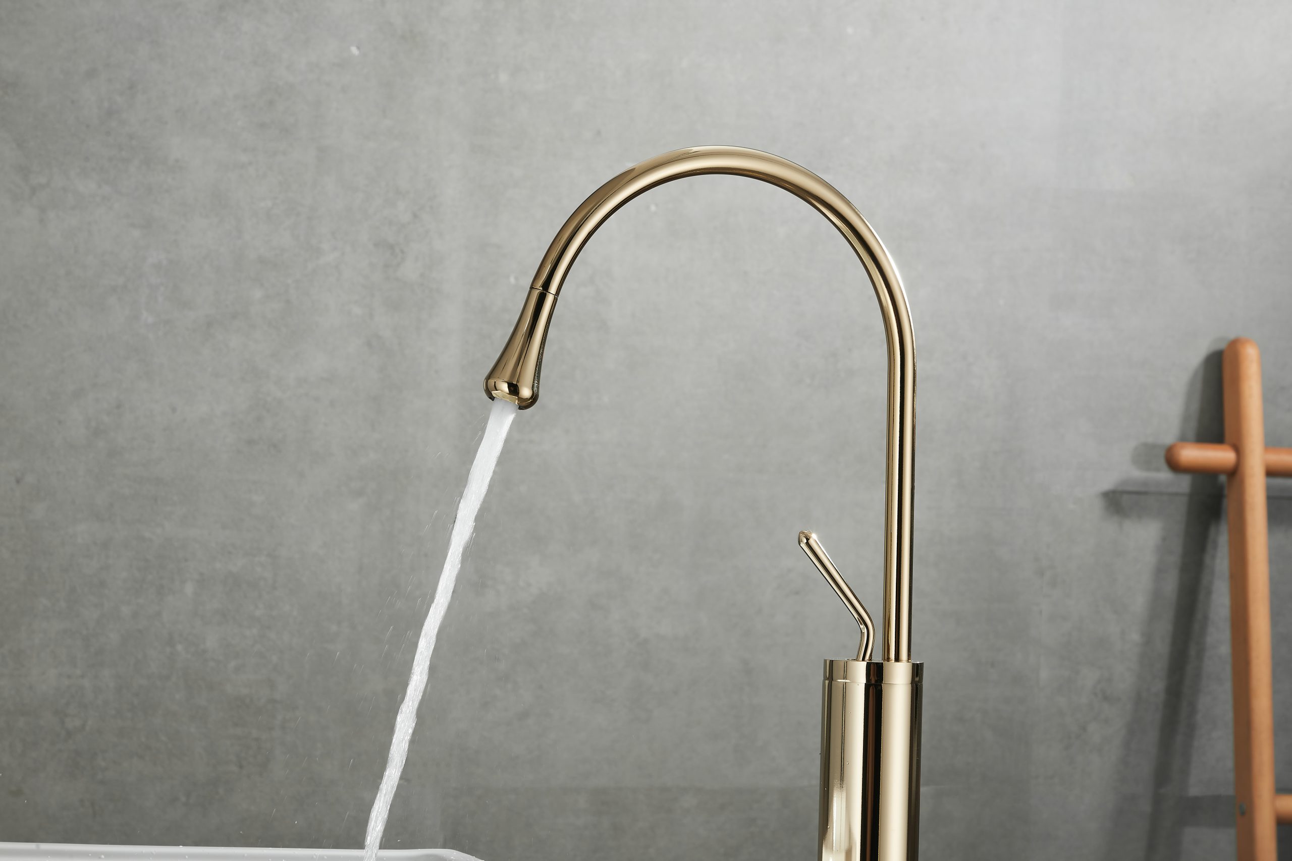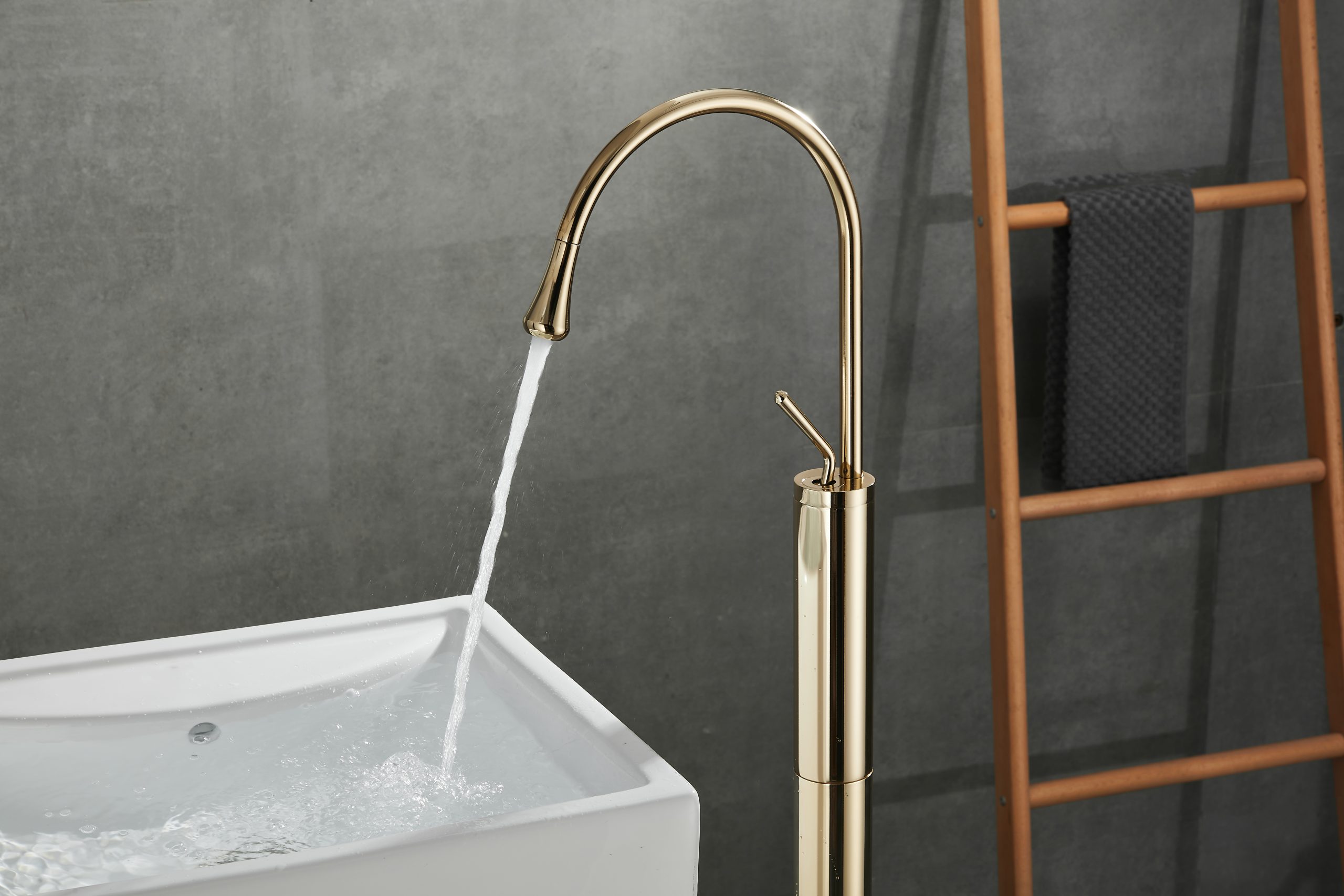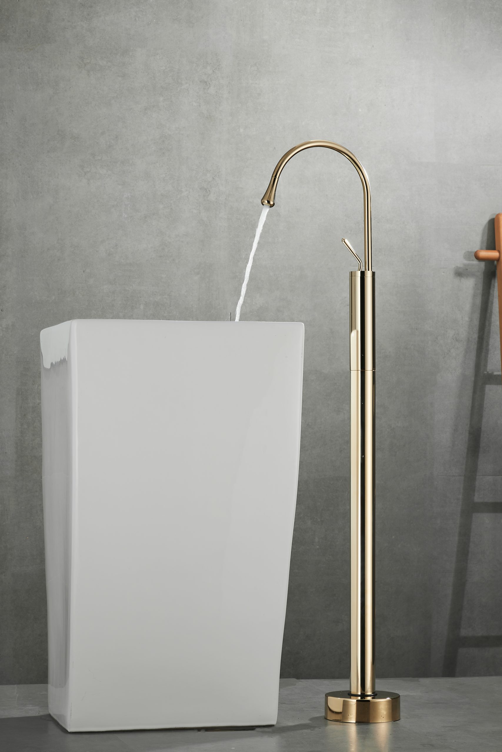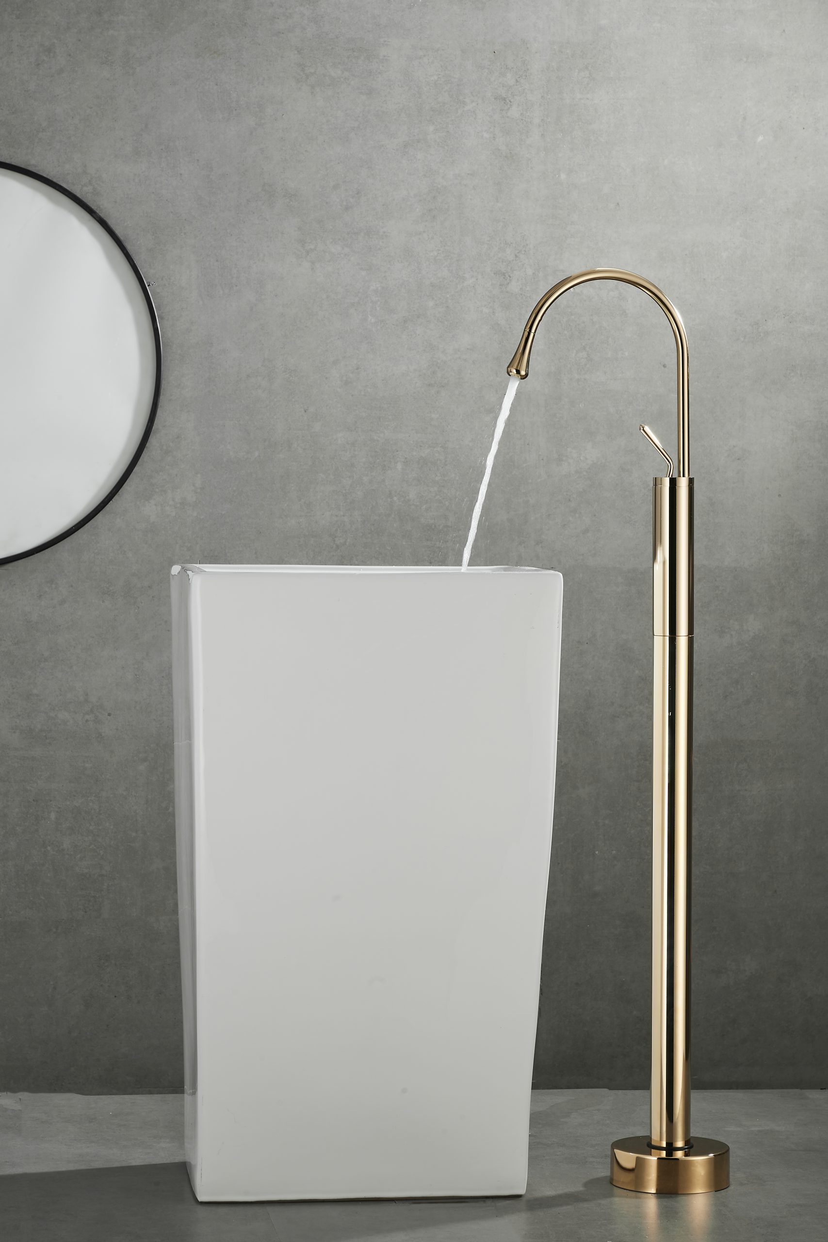Gold Floor Mounted Standing Pedestal Basin Faucet
